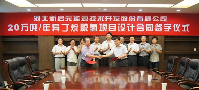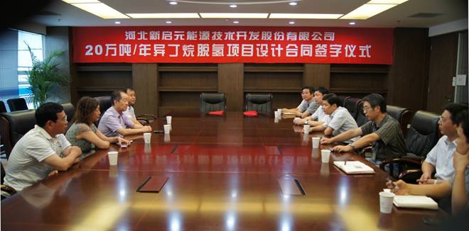 2013年8月23日,集團(tuán)董事長(zhǎng)王振華、新啟元董事長(zhǎng)李志剛等公司高層領(lǐng)導(dǎo)在合肥市東華科技股份有限公司與吳院長(zhǎng)、張副總等人分別代表雙方公司進(jìn)行了20萬(wàn)噸/年異丁烷脫氫項(xiàng)目設(shè)計(jì)合同的簽字儀式。