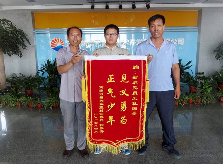7月15日,在車(chē)禍中被救人員家屬來(lái)到新啟元公司,向見(jiàn)義勇為的員工杜國(guó)號(hào)贈(zèng)送錦旗表示感謝,這是他繼去年救助一名落水老人之后的又一善舉。