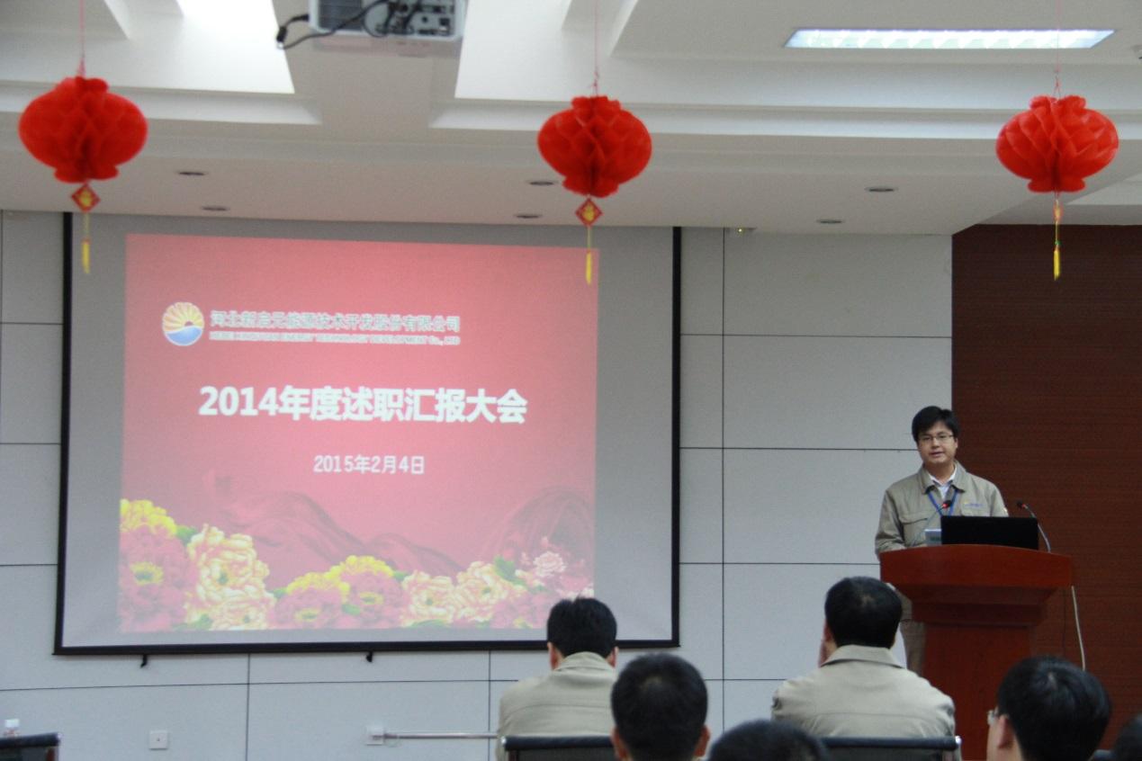 劉華冰首先宣讀了2014年度各部門績(jī)效考核成績(jī)。隨后,各部門經(jīng)理分別進(jìn)行述職匯報(bào),認(rèn)真總結(jié)了2014年取得的成績(jī)和存在的不足,明確了2015年工作計(jì)劃。
