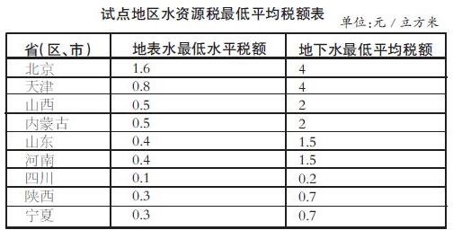 此次試點最低平均稅額為:地表水每立方米0.1-1.6元、地下水每立方米0.2-4元。按不同取用水性質(zhì)實行差別稅額:對地下水超采地區(qū)取用地下水加征1-4倍;對超計劃或超定額用水加征1-3倍;對特種行業(yè)從高征稅;對超過規(guī)定限額的農(nóng)業(yè)生產(chǎn)取用水、農(nóng)村生活集中式飲水工程取用水等從低征稅。試點方案還明確了規(guī)定限額內(nèi)的農(nóng)業(yè)生產(chǎn)取用水、取用污水處理再生水、采油排水分離凈化后回注等6種減免稅情形。