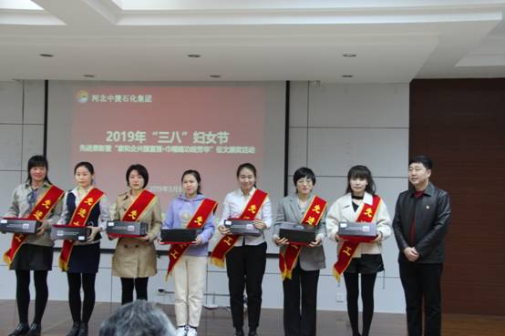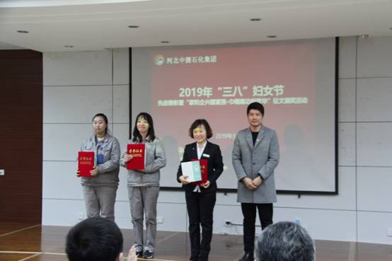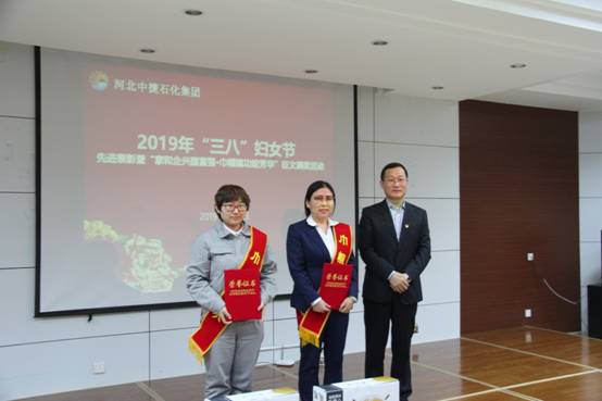 3月8日上午,河北中捷石化集團(tuán)在科研樓六樓會(huì)議室組織舉辦了2019年“三八”婦女節(jié)先進(jìn)表彰暨“家和企興國富強(qiáng)?巾幗建功綻芳華”征文頒獎(jiǎng)活動(dòng)。集團(tuán)公司黨政領(lǐng)導(dǎo),各單位黨(總)支部領(lǐng)導(dǎo)、先進(jìn)女職工、征文獲獎(jiǎng)?wù)呒芭ご淼?0余人參加活動(dòng)。中捷產(chǎn)業(yè)園區(qū)宣傳部劉金林部長出席了本次活動(dòng)。