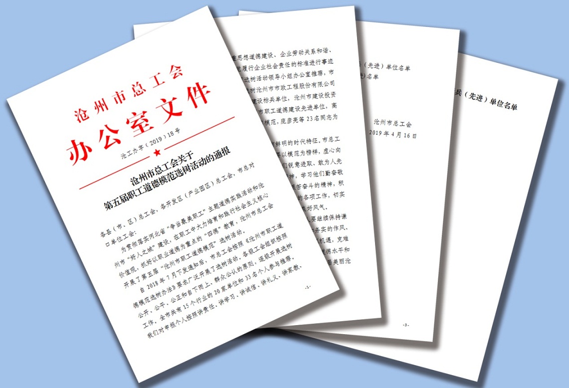 近日,中捷產(chǎn)業(yè)園區(qū)總工會(huì)為新啟元公司頒發(fā)了由滄州市總工會(huì)授予的“滄州市第五屆職工道德建設(shè)先進(jìn)單位”榮譽(yù)稱號(hào),這是新啟元公司繼榮獲“厚德企業(yè)”、“先進(jìn)職工之家”、“模范職工之家”后的又一殊榮。