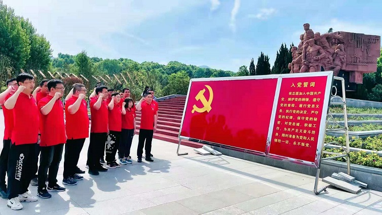 離開紀(jì)念館時(shí),集團(tuán)公司黨員干部一行共同瞻仰了雕塑《忠魂曲》,并在集團(tuán)公司總經(jīng)理、黨委副書記喬樹華同志的帶領(lǐng)下重溫了入黨誓詞。