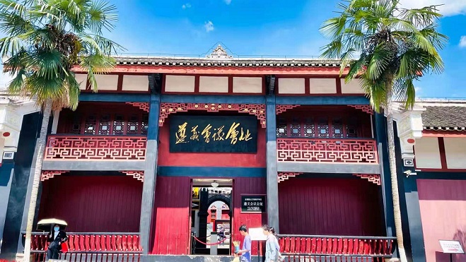 駐足遵義會(huì)議紀(jì)念館,首先映入大家眼簾的是紀(jì)念館門前大門正上方掛著的一塊黑漆金匾,上面有毛主席親自題寫的“遵義會(huì)議會(huì)址”6個(gè)金光閃閃的大字,字跡飄逸豪放。遵義會(huì)議紀(jì)念館的展廳內(nèi)展示了大量文物、珍貴歷史圖片、文獻(xiàn)資料等,生動(dòng)地再現(xiàn)了紅軍長征的歷程。“長征精神誨育千秋,遵義會(huì)議永放光芒?!弊窳x會(huì)議集中體現(xiàn)了堅(jiān)定信念、實(shí)事求是、獨(dú)立自主、敢創(chuàng)新路、民主團(tuán)結(jié)的精神。