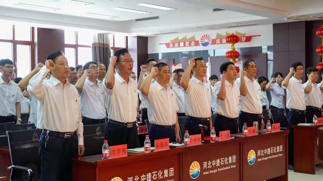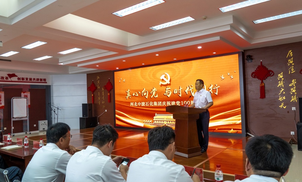 集團公司訊 為熱烈慶祝中國共產(chǎn)黨成立100周年,進(jìn)一步激發(fā)基層黨組織活力,增強黨員干部的光榮感、使命感,大力營造積極向上的氛圍,弘揚正氣。同時,結(jié)合上級黨委關(guān)于黨史學(xué)習(xí)教育的要求部署和《關(guān)于在集團開展黨史學(xué)習(xí)教育的實施意見》,為把學(xué)習(xí)習(xí)近平新時代中國特色社會主義思想貫穿始終,把學(xué)史明理、學(xué)史增信、學(xué)史崇德、學(xué)史力行貫穿始終,把學(xué)黨史、悟思想、辦實事、開新局貫穿始終,進(jìn)一步勉勵廣大黨員不忘初心,牢記使命,繼承和發(fā)揚黨的優(yōu)良傳統(tǒng),推動集團各項事業(yè)持續(xù)、穩(wěn)定、創(chuàng)新、發(fā)展,6月28日,河北中捷石化集團黨委組織召開了慶祝建黨100周年大會。原中捷企業(yè)黨工委書記沈?qū)W明同志,集團黨委書記于國臣同志,集團黨委副書記、總經(jīng)理喬樹華同志,以及各所屬黨支部書記,各支部黨員代表共計70余人參加了此次活動。