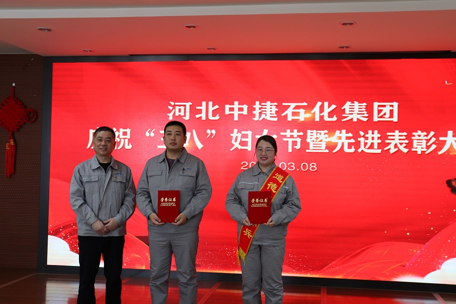 集團(tuán)公司訊 3月8日上午,河北中捷石化集團(tuán)在科研樓六樓會議室組織舉辦了慶?!叭恕眿D女節(jié)暨先進(jìn)表彰大會。集團(tuán)公司領(lǐng)導(dǎo),各黨(總)支部書記、工會主席,先進(jìn)女職工、征文獲獎?wù)?0余人參加。中捷產(chǎn)業(yè)園區(qū)群團(tuán)工作部、政法辦相關(guān)領(lǐng)導(dǎo)出席了本次活動。