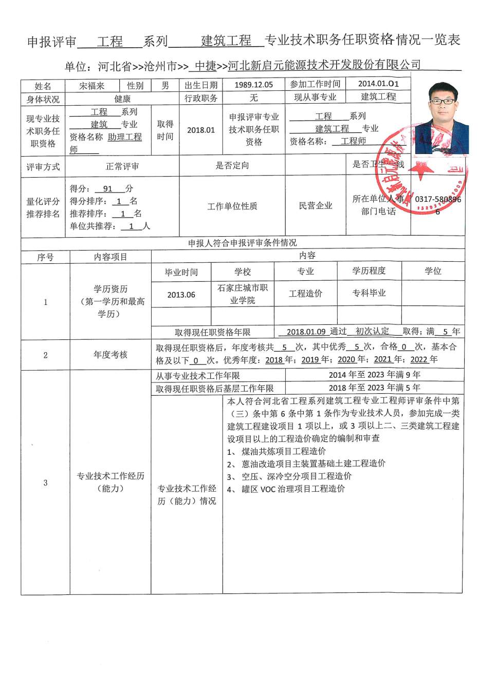 2023年河北新啟元申報中級職稱人員信息公示